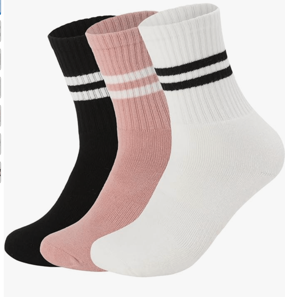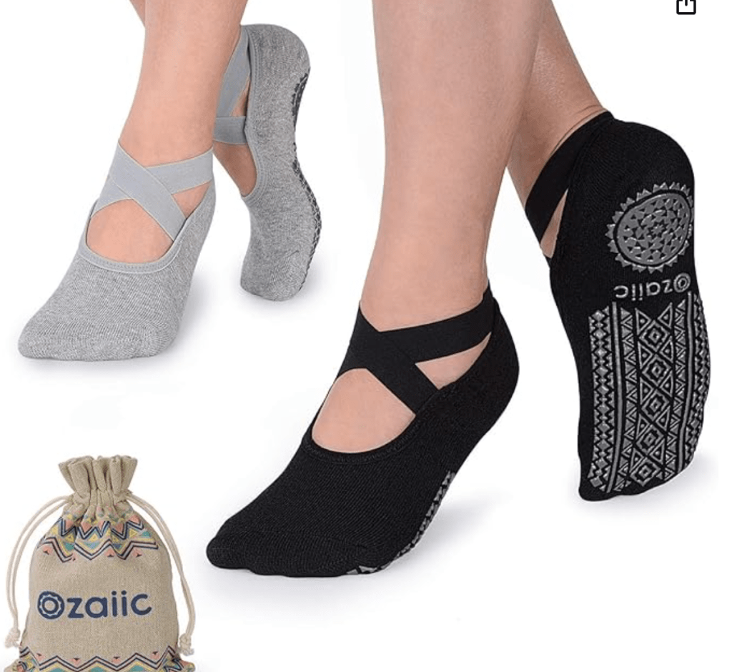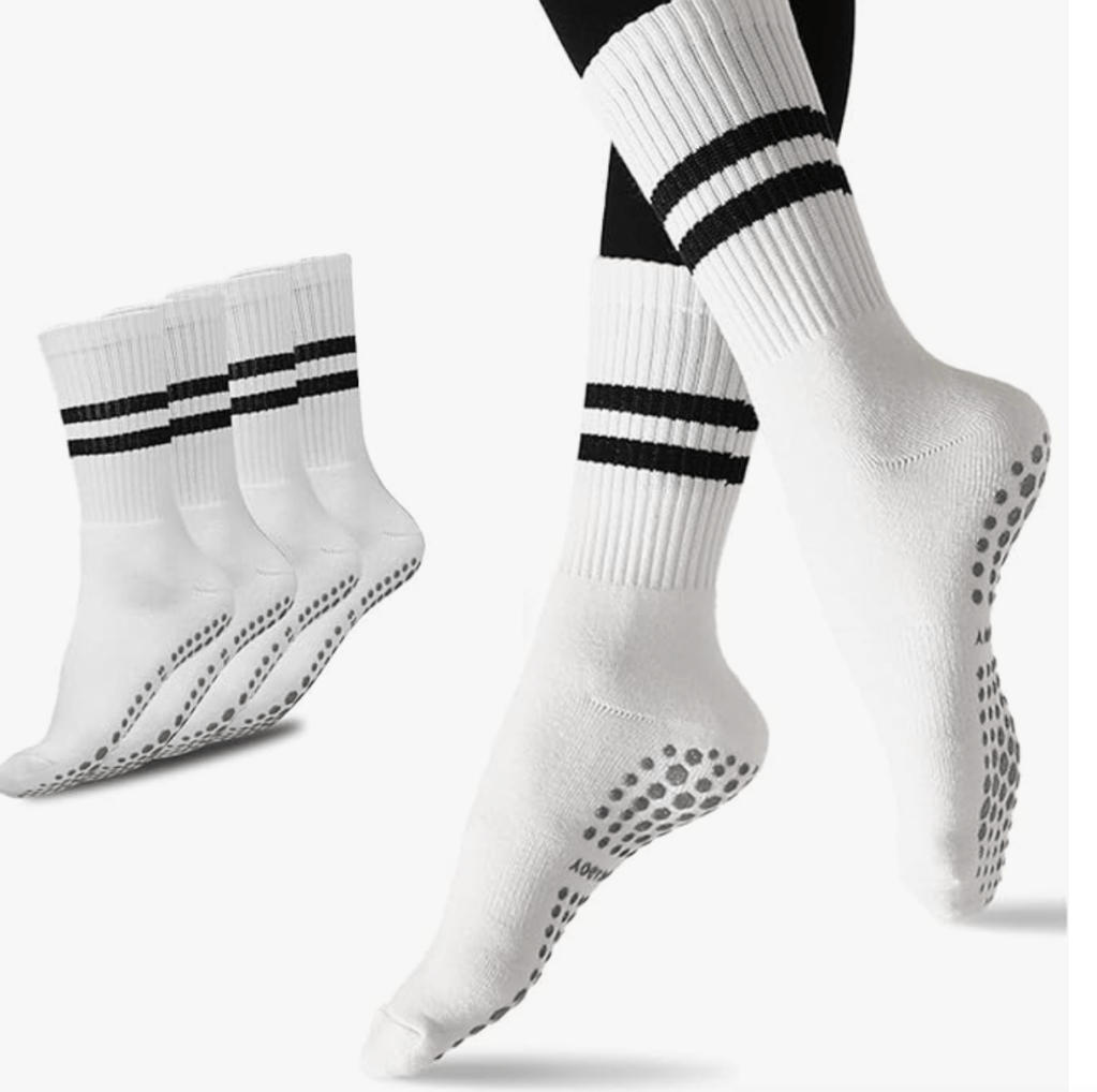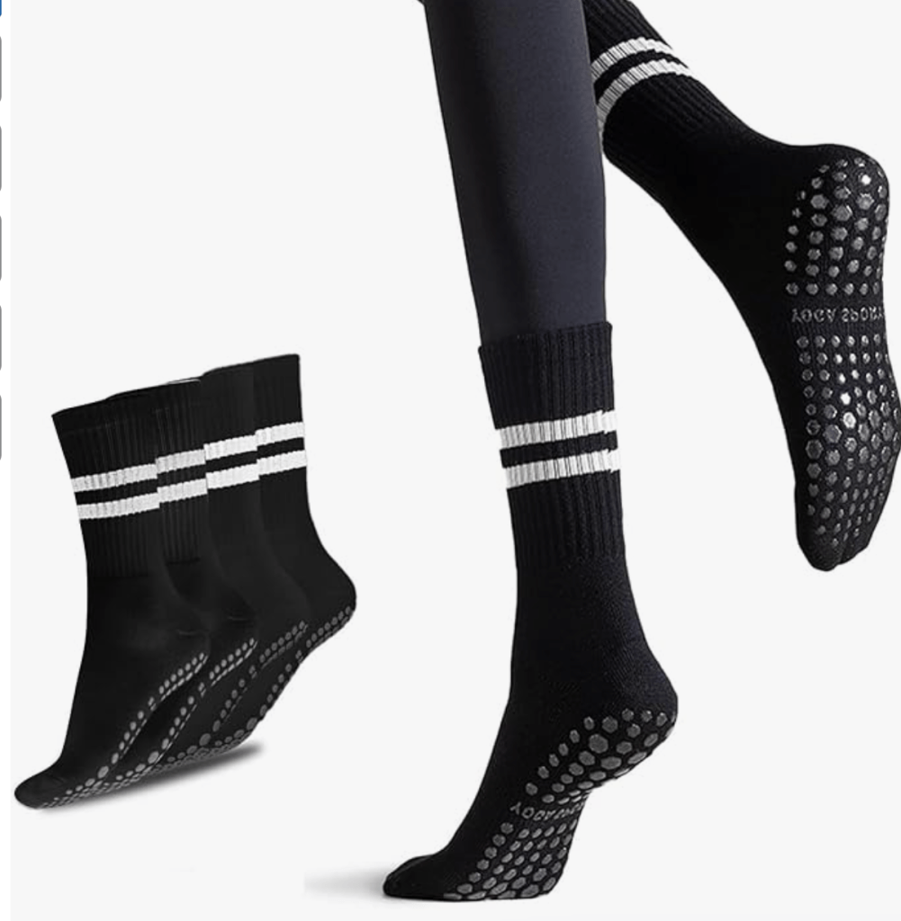👉 [Shop: Crew Length Anti-Slip Pilates Grip Socks – 3 Pack]